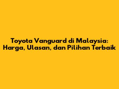 Hai guys! Jika korang tengah mencari SUV yang sporty dan reliable, Toyota Vanguard memang patut korang pertimbangkan. Model ni dah lama menjadi pilihan ramai di Malaysia, terkenal dengan ketahanan, ruang dalaman yang luas, dan prestasi yang mantap. Dalam artikel ni, kita akan kupas habis-habisan tentang Toyota Vanguard, daripada harga terkini, ulasan pengguna, sehinggalah pilihan terbaik yang ada di pasaran kereta terpakai Malaysia. Jom kita selami lebih lanjut!